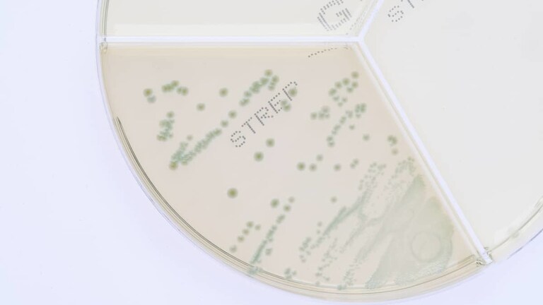 Auf dem ClearMilk Test wächst Streptococcus agalactiae innerhalb von 24 Stunden nach dem Auftragen der Milch auf die Petrischale, und zwar in kleinen, blaugrünen Kolonien. Danach kann das Testergebnis in unserem Labor mit dem Gerät MALDI TOF kontrolliert werden und vor allem muss die Antibiotikaempfindlichkeit bestimmt werden. Aus der Sicht eine korrekten Praxis bei der antibiotischen Therapie sollten je nach dem Ergebnis des Antibiogramms Antibiotika mit einem spezifisch engen Wirkungsspektrum eingesetzt werden, um so der Entstehung von Resistenzen vorzubeugen, z. B. Benzylpenizillin.